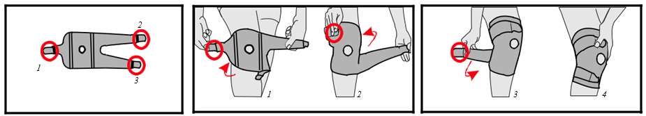 Steps 3: Wrap the hook 3 over calf and stick towards front side. Adjust the tightness of Knee supports to get the most comfortable movement.